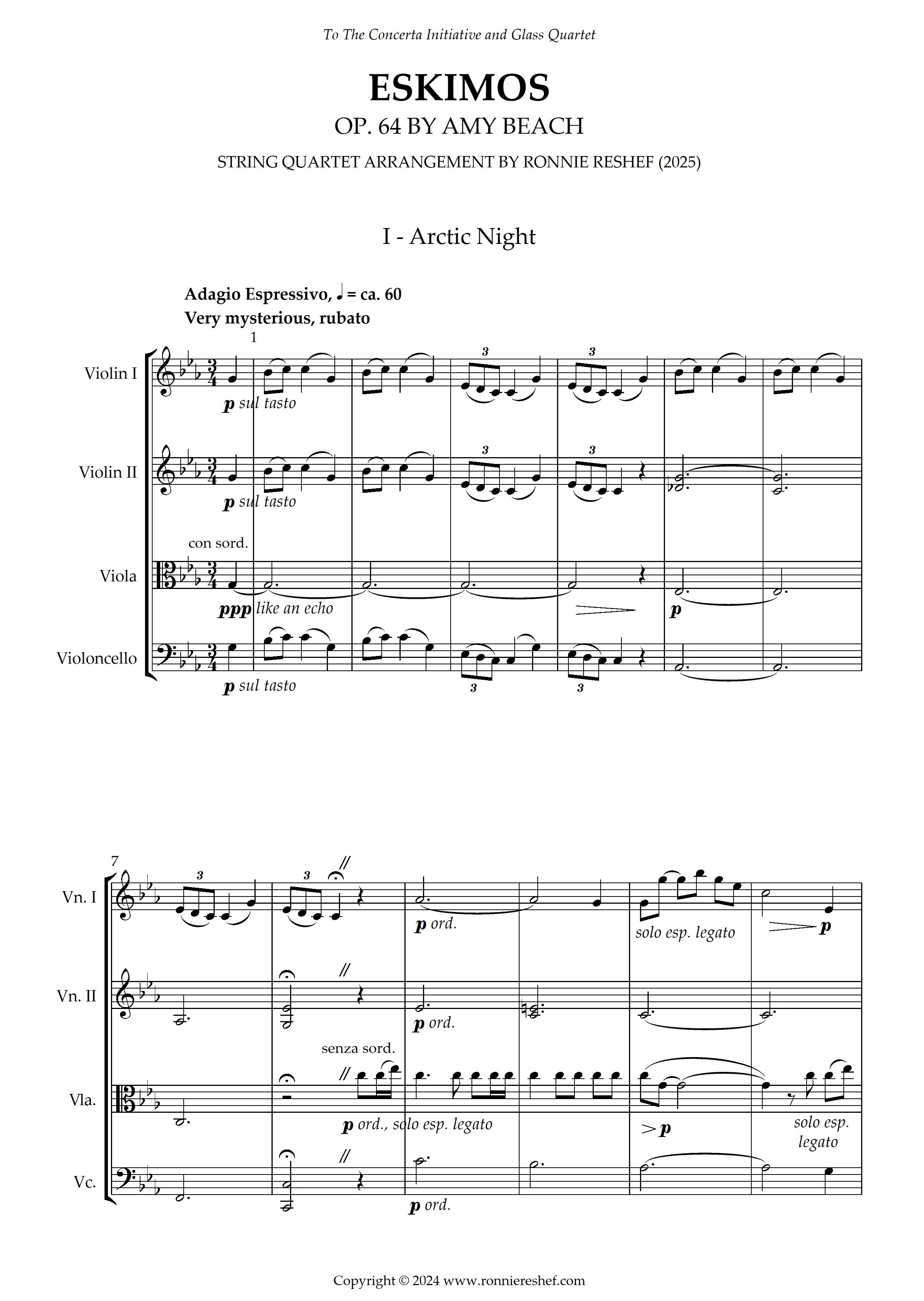 As part of Concert.a’s annual festival, I was commissioned to prepare a string quartet arrangement for Amy Beach’s beautiful and delicate piano piece ‘Eskimos’, which lends itself very naturally to the medium of the string quartet. The piece consists of four movements - the clip here shows #1 and #2.